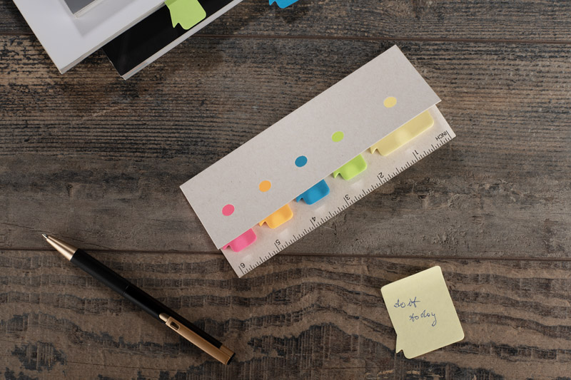 Zestaw karteczek samoprzylepnych CLOUD to funkcjonalny gadżet biurowy o nietypowym, przyciągającym wzrok designie. Wykonany z recyklingowanego kartonu po mleku, łączy w sobie praktyczne kolorowe zakładki oraz linijkę, która stanowi część opakowania. Kompaktowy format sprawia, że zestaw idealnie sprawdzi się zarówno w biurze, jak i w podróży – do szybkiego notowania, planowania i organizowania dokumentów. Świetny jako dodatek do zestawów biurowych i kreatywnych kampanii promo