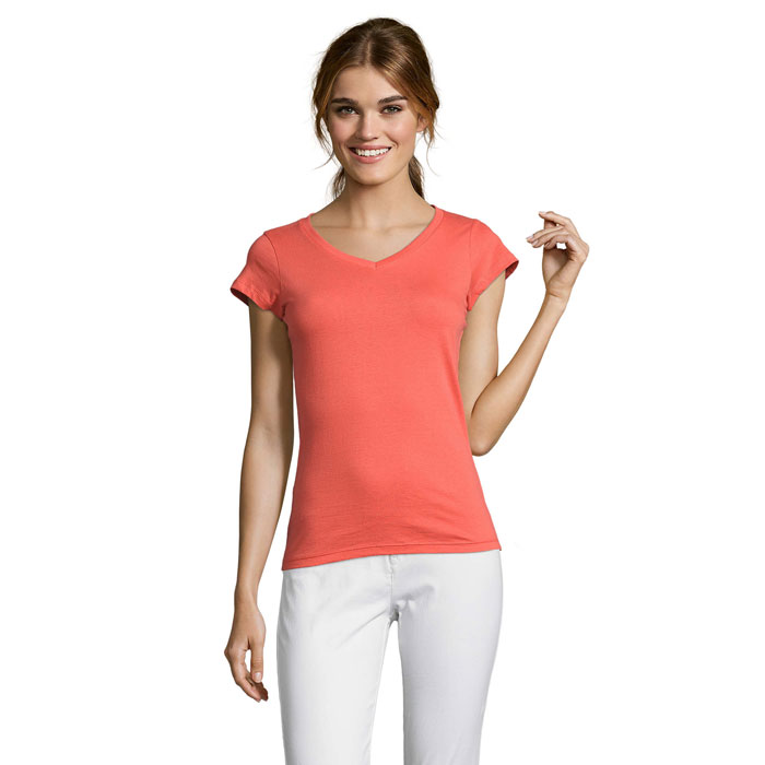 SOL'S MOON Damska koszulka z dekoltem w literę V, nieco głębszym dekoltem w literę V i wzmocnionym szwem, dopasowanym kroju z naszytym bocznym szwem. 100% czesana bawełna ringspun 150g / m². .