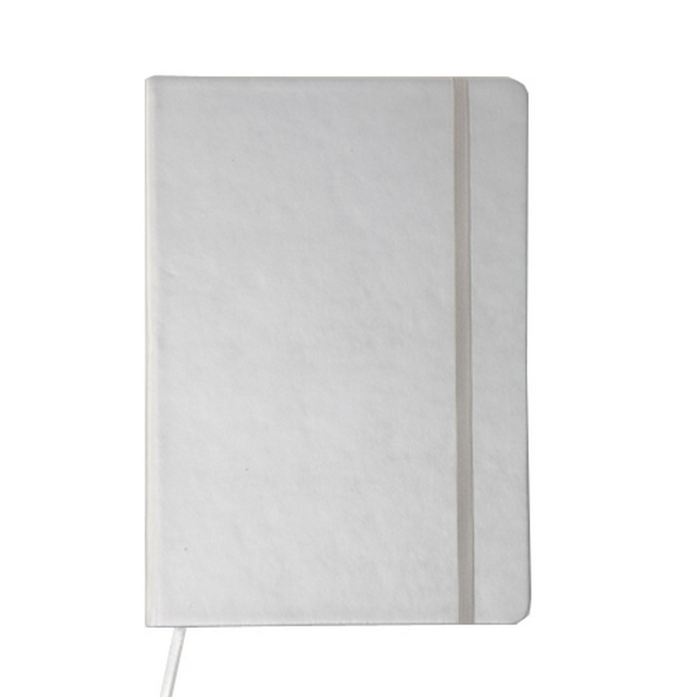 Notatnik w formacie A5, posiada 100 pustych kartek, twarda okładka, tasiemka zakładkowa umożliwia wygodne zaznaczanie ostatniej strony lub ważniejszych notatek, dodatkowe zamknięcie w postaci dopasowanej kolorystycznie elastycznej opaski, produkt wykonany z PU
