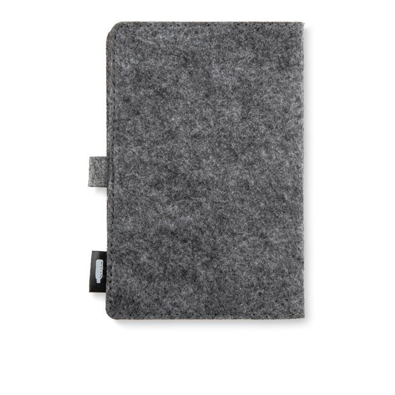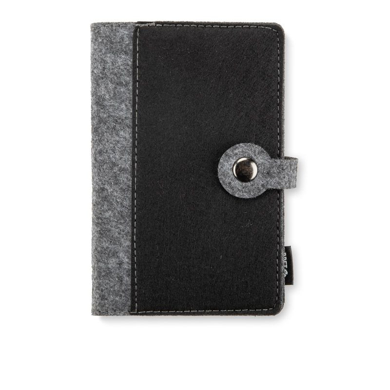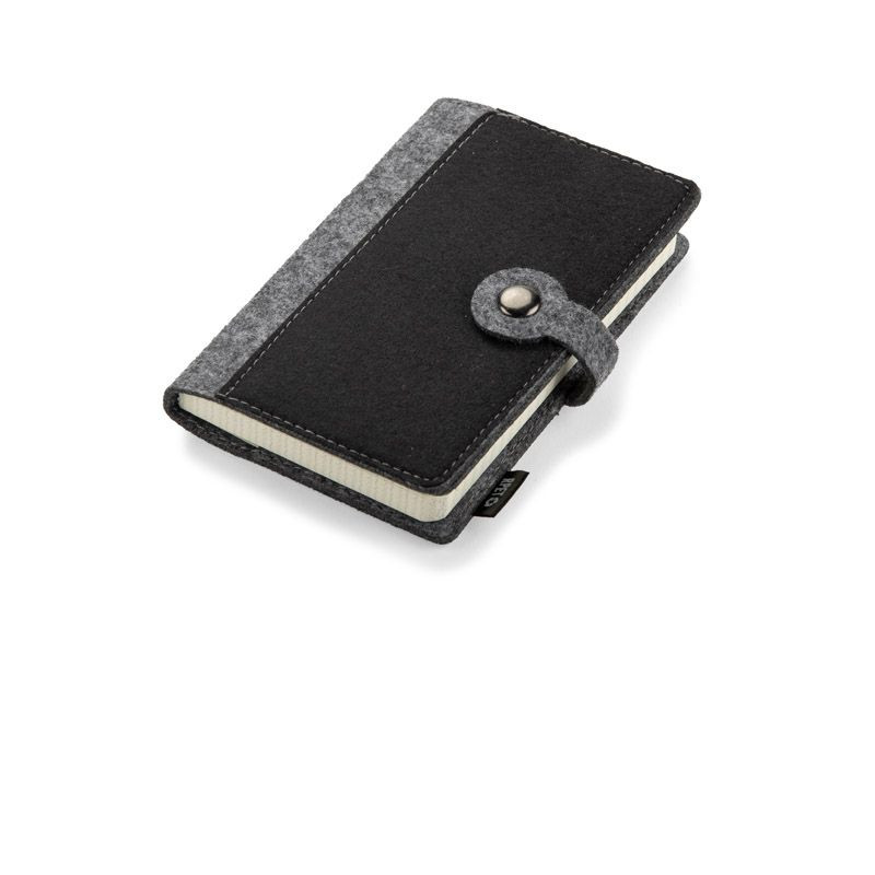 Zeszyt A6 EVERO z filcowanego materiału rPET to lekki, poręczny i trwały gadżet do notowania. Zapinany na guzik, z kartkami w kratkę, idealny w podróży, na spotkaniach lub w pracy. Doskonale sprawdzi się jako gadżet firmowy, element pakietu powitalnego lub praktyczny prezent dla klientów i pracowników.