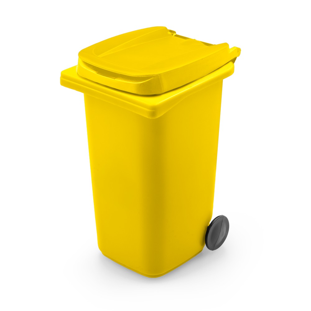 Pojemnik na przybory do pisania „kontener na śmieci” na kółkach, posiada pokrywkę i matowe wykończenie, produkt wykonany z PP