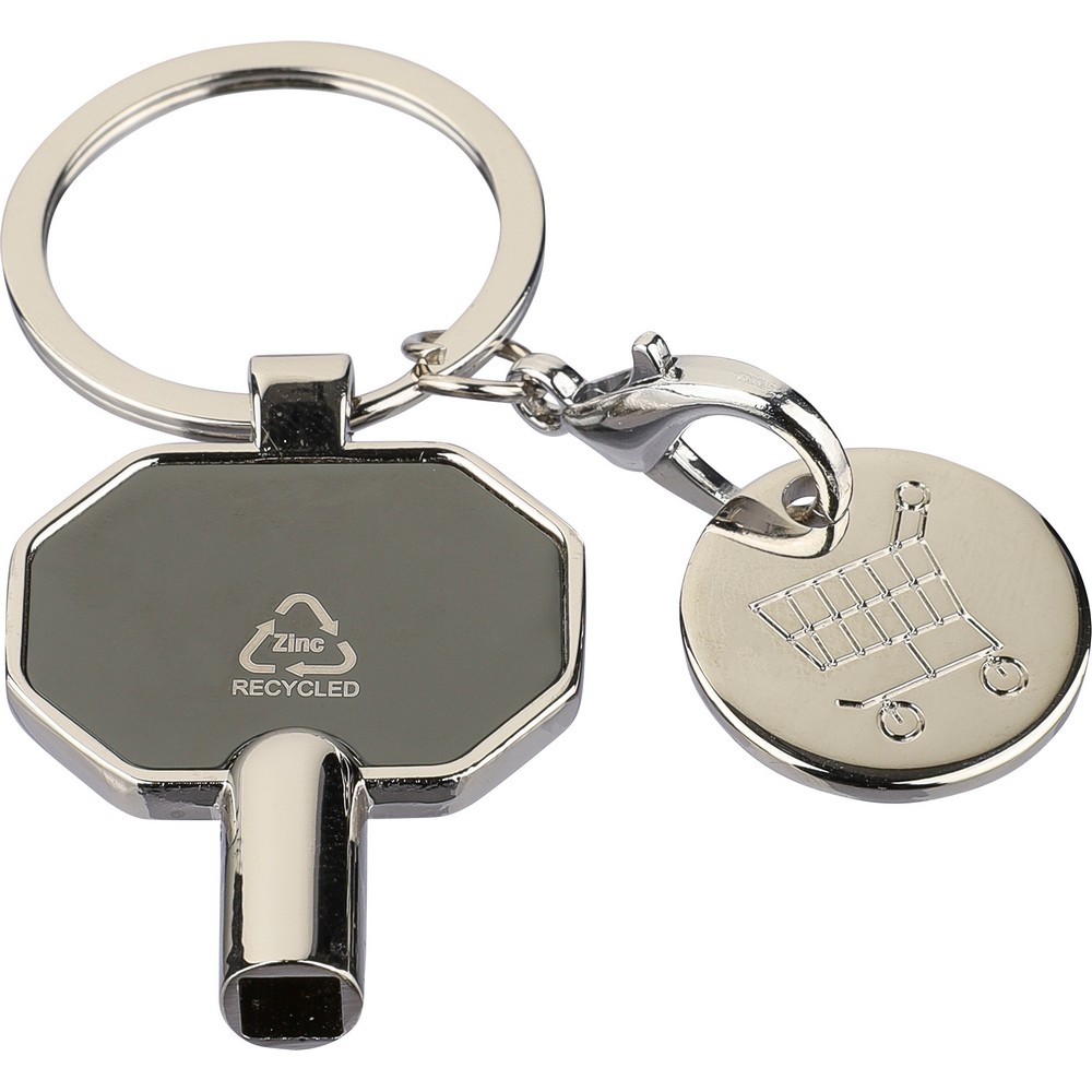 Brelok do kluczy 3 in 1 zawiera: klucz do odpowietrzania kaloryferów, żeton do wózka na zakupy, brelok, ikona recyklingu na produkcie, zapakowany pojedynczo w brązową kopertę, produkt wykonany z metalu