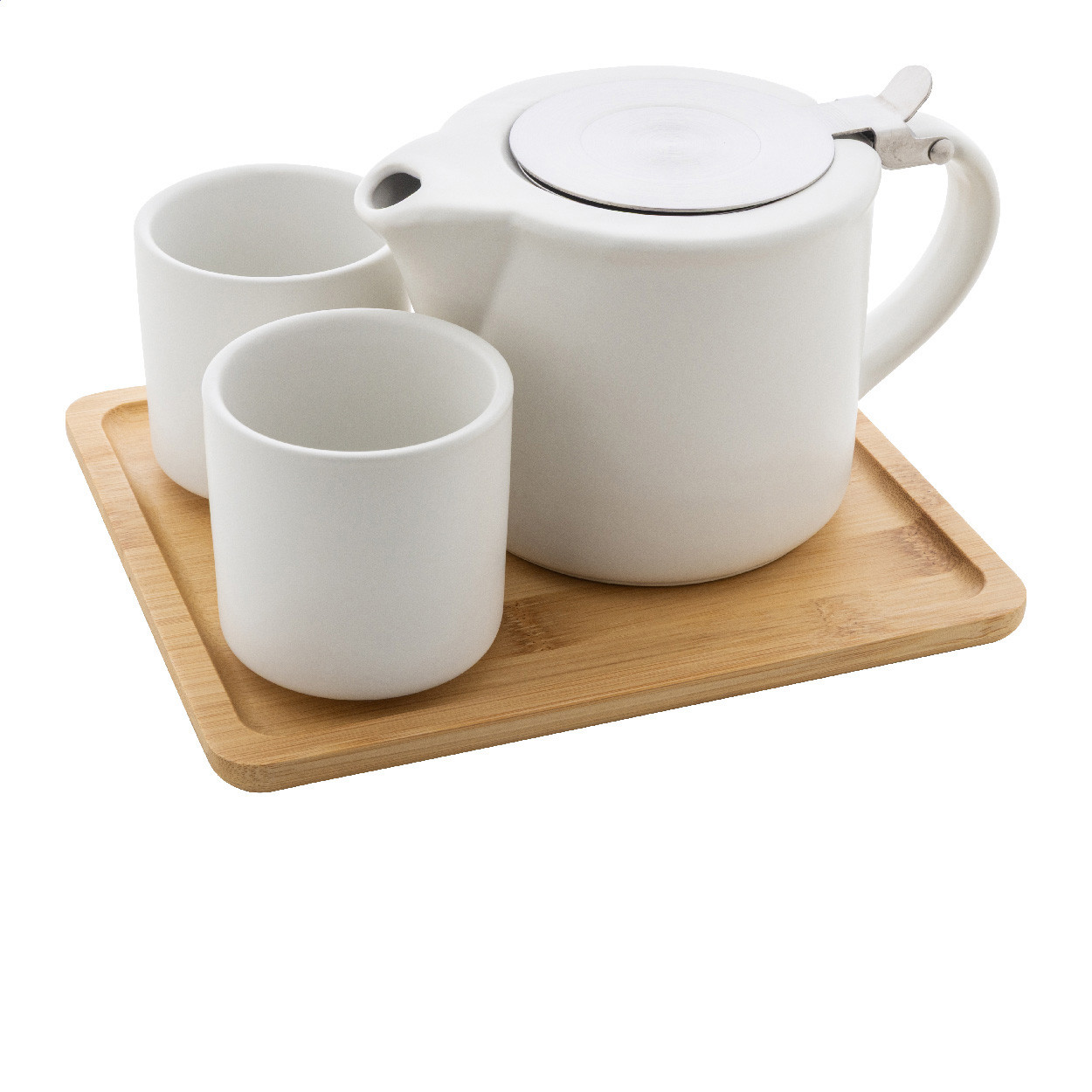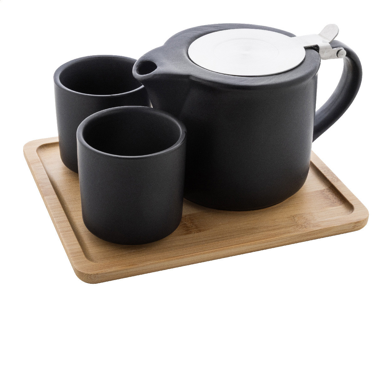Zestaw został zaprojektowany z myślą o wygodzie użytkowania. Czajniczek z sitkiem umożliwia łatwe zaparzanie liściastej herbaty, filiżanki idealnie mieszczą porcję napoju, a bambusowa taca ułatwia przenoszenie całego zestawu.