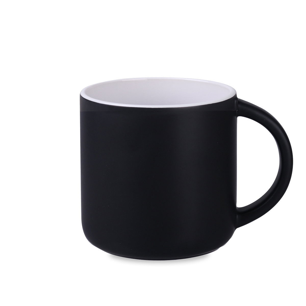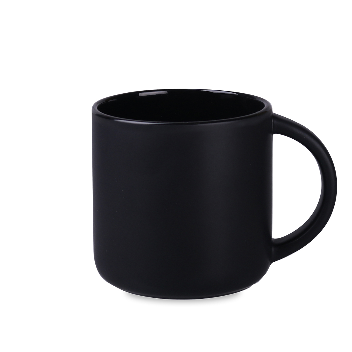 Pierwsze wrażenie, jakie wywiera ten kubek, opiera się na fascynującej grze faktur i wykończeń. Zewnętrzna ścianka pokryta jest czarnym, matowym szkliwem. Czerń w wydaniu matowym to synonim nowoczesnego luksusu i profesjonalizmu. Jest powściągliwa, minimalistyczna i niezwykle przyjemna w dotyku – satynowa powierzchnia sprawia, że kubek pewnie leży w dłoni i nie wyślizguje się, co podnosi komfort użytkowania.