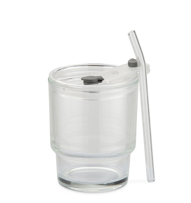 Kubek NOA o pojemności 350 ml wykonany ze szkła i wyposażony w dopasowaną szklaną słomkę oraz pokrywkę. Pokrywka z otworem umożliwia picie przez słomkę lub po jej zdjęciu – korzystanie jak z klasycznej szklanki. Przejrzysta forma i minimalistyczny design sprawiają, że kubek prezentuje się nowocześnie i uniwersalnie