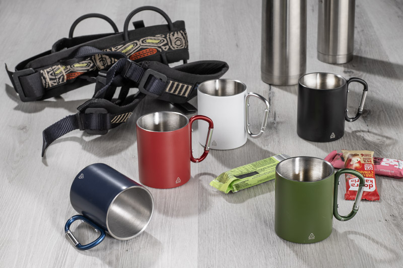 Kubek VIVO o pojemności 250 ml został wykonany z recyklingowanej stali nierdzewnej, a jego uchwyt w formie karabińczyka – z recyklingowanego aluminium. Matowe wykończenie nadaje mu nowoczesny wygląd, a karabińczyk umożliwia łatwe przypięcie kubka do plecaka lub torby. Praktyczny w podróży, podczas biwaku czy spaceru, stanowi atrakcyjny gadżet promocyjny i doskonały wybór dla osób ceniących świadome rozwiązania.