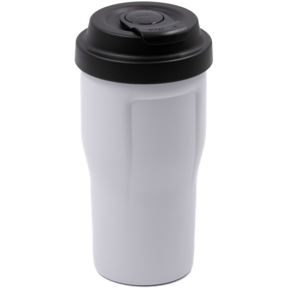 Kubek termiczny 510 ml BrandCharger Posh Café, wieczko otwierane przyciskiem, posiada podwójne ścianki ze stali nierdzewnej z próżnią między ściankami, co spowalnia oddawanie temperatury na zewnątrz, zachowując funkcje termosu, można myć w zmywarce, produkt wykonany ze stali nierdzewnej