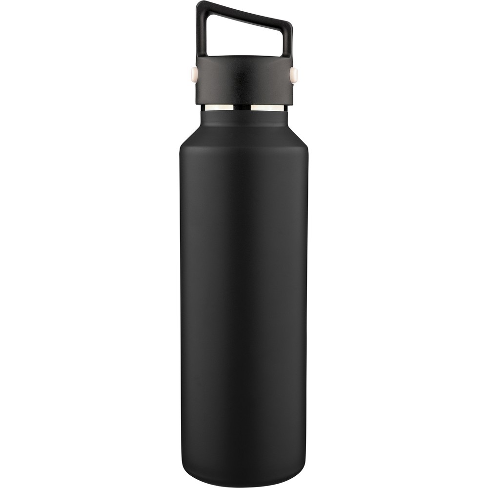 Kubek termiczny 600 ml, posiada podwójne ścianki ze stali nierdzewnej z próżnią między ściankami, co spowalnia oddawanie temperatury na zewnątrz, zachowując funkcje termosu, uchwyt ułatwiający przenoszenie, zawiera przyciski po bokach do otwierania pokrywki, pakowany pojedynczo w brązowe kartonowe pudełko, produkt wykonany z recyklingowej stali nierdzewnej (wewnątrz 304 / na zewnątrz 201) z pokrywką z PP