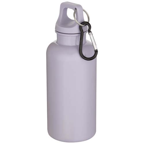 Dzięki tej wytrzymałej, a jednocześnie lekkiej butelce o pojemności 400 ml wykonanej z PET pochodzącego z recyklingu z certyfikatem RCS możesz przez cały czas zapewnić odpowiednie nawodnienie swojego organizmu. Będzie ona idealnym towarzyszem podczas ćwiczeń, podczas jednodniowych wycieczek lub w biurze. Jednościenna butelka Oregon ma zakręcaną pokrywkę i zapewnia dużo miejsca na umieszczenie dowolnego logo. Przypnij butelkę do torby za pomocą przymocowanego karabińczyka (niep