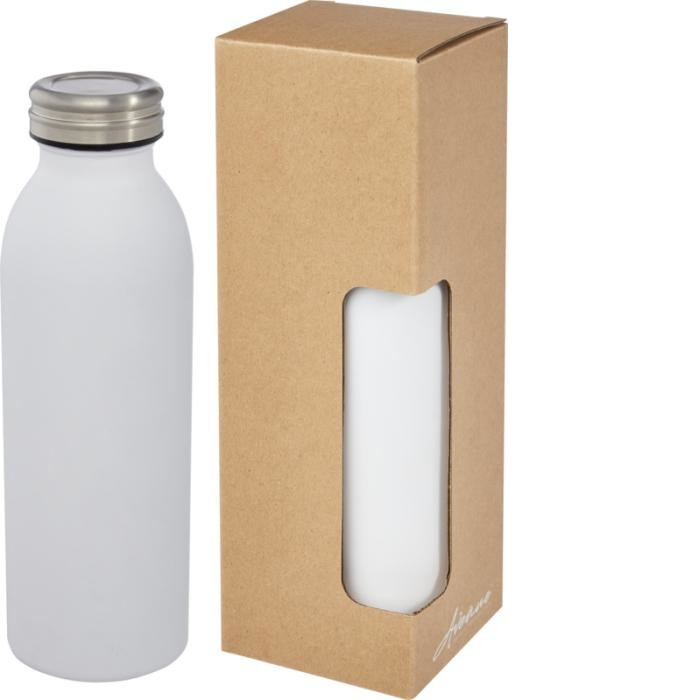 Termos Riti jest wykonany z podwójnej ścianki miedzianej z izolacją próżniową ze stali nierdzewnej 18/8, która jest idealna do utrzymywania napojów w niskiej lub wysokiej temperaturze przez długi czas. 100% szczelny, nie zawiera BPA, został przetestowany i zatwierdzony zgodnie z niemiecką ustawą o bezpieczeństwie żywności (LFGB). Sprawdzona i zatwierdzona pod kątem zawartości ftalanów zgodnie z przepisami REACH. Pojemność 500 ml. Zaleca się mycie ręczne. Zapakowany w kartonowe pudełko upominkowe wykonane z materiałów pochodzących z recyklingu.