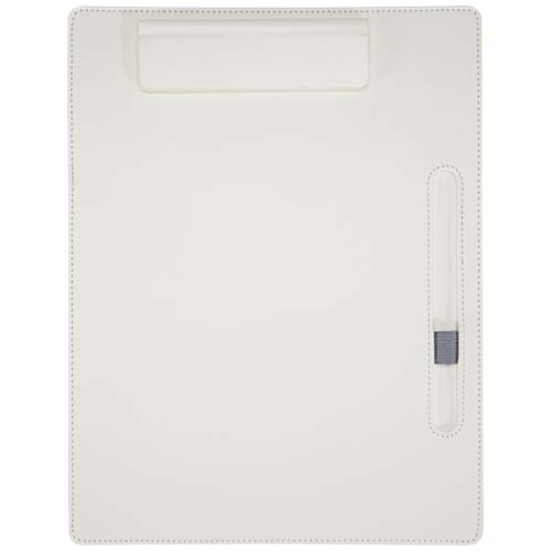 Clast podkładka do pisania z klipsem łączy w sobie elegancki design ze skóry PU z praktycznymi funkcjami przydatnymi zarówno podczas spotkań, jak i w codziennym użytkowaniu. Pasuje do standardowych stron A4 i zawiera magnetyczny klips, zszyte krawędzie oraz wbudowaną pętelkę na długopis. W środku znajduje się 26 kartek papieru w linie o gramaturze 65 g/m² oraz długopis z górną częścią korpusu wykonaną z tworzyw sztucznych pochodzących z recyklingu i dolną częścią korpu