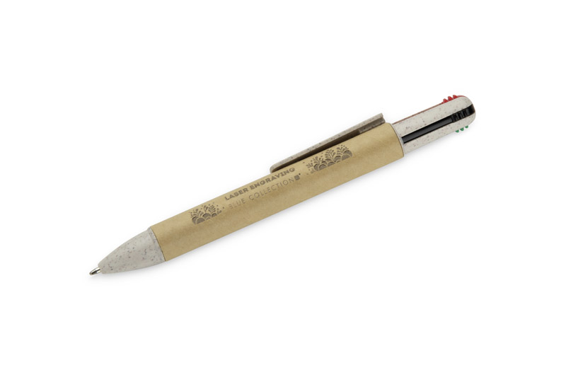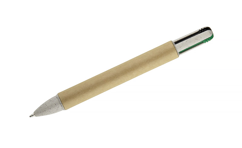 Długopis MIBO 4 w 1 to praktyczne narzędzie biurowe, które pozwala pisać w czterech kolorach — niebieskim, czarnym, czerwonym i zielonym. Korpus wykonany z papieru sprawia, że długopis jest lekki i przyjemny w użytkowaniu. Prosty, uniwersalny kształt oraz automatyczny mechanizm wysuwu ułatwiają szybkie przełączanie między kolorami. Wkłady typu X20 o grubości pisania 0,7 mm zapewniają płynne i czytelne pisanie. MIBO to funkcjonalny gadżet reklamowy z możliwością znakowania