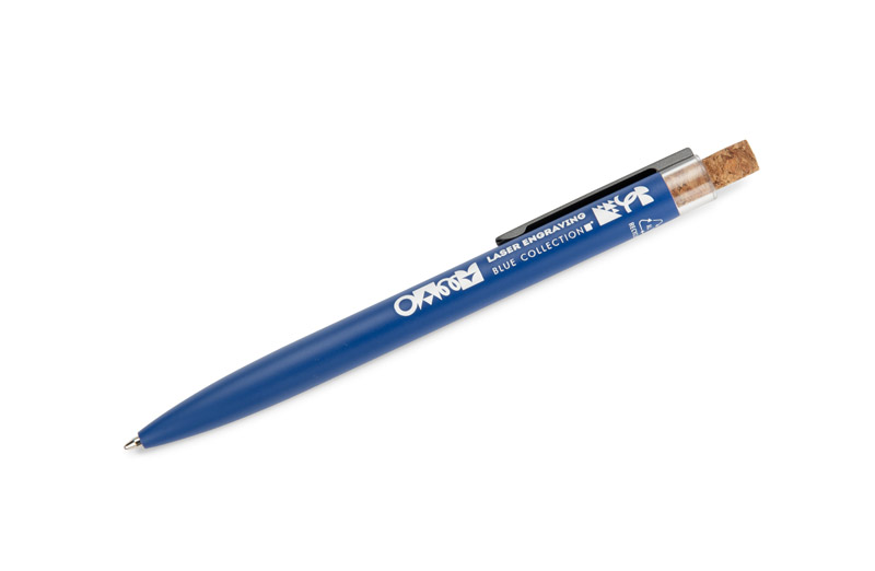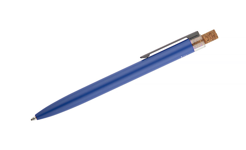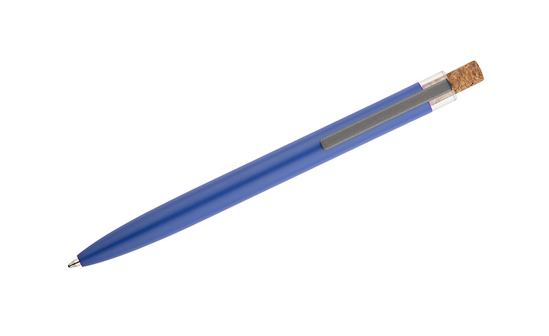 Długopis KORIN wykonany jest z recyklingowanego aluminium i pokryty lakierowanym wykończeniem, które nadaje mu gładką, satynową powierzchnię. Wyposażony w automatyczny mechanizm, wkład typu G2 o grubości pisania 1,0 mm oraz metalowy klips w kolorze grafitowym. Korkowy przycisk stanowi ciekawy akcent, podkreślający nowoczesny charakter długopisu. KORIN jest lekki, solidny i wygodny w codziennym użytkowaniu.