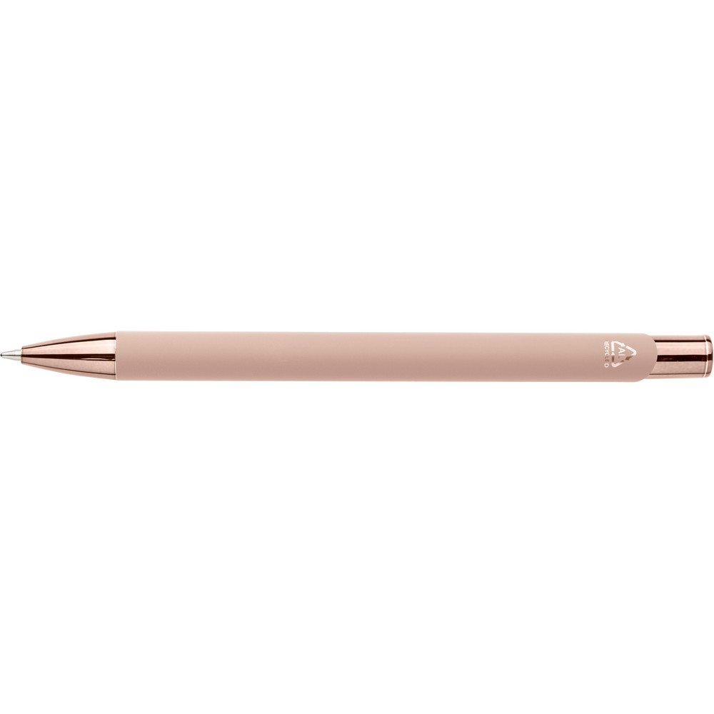Długopis, metalowy klips, wkład w niebieskim kolorze, ikona recyklingu na produkcie, wystarcza na ok, 800 m pisania, produkt wykonany z ABS z recyklingu, aluminium z recyklingu i metalu