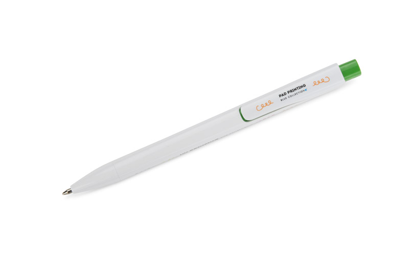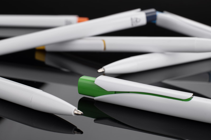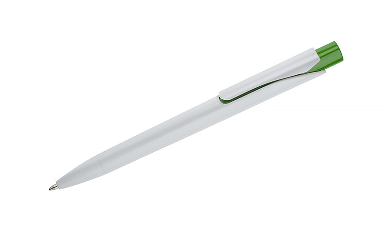 Długopis KLIBO wykonany jest z tworzywa rABS w klasycznym białym kolorze, z lakierowanym wykończeniem. Wyróżnia go kwadratowy, kolorowy przycisk oraz wąski, płaski klip, który pewnie trzyma się dokumentów i notesów. Mechanizm automatyczny zapewnia wygodne użytkowanie, a wkład typu G2 o grubości pisania 1,0 mm gwarantuje płynny i równy zapis. Lekka konstrukcja i nowoczesna forma sprawiają, że KLIBO to praktyczny gadżet reklamowy do codziennego użytku.
