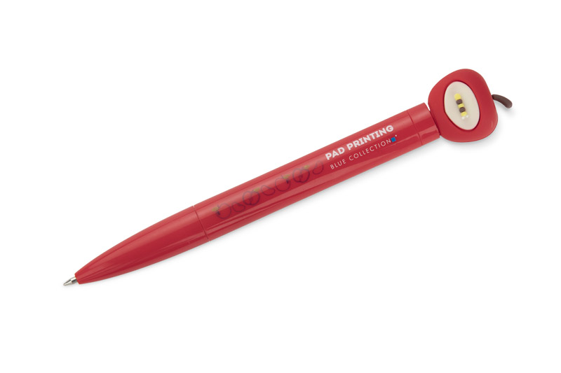 Długopis SKIPPI z motywem jabłka wyróżnia się nietuzinkowym designem i funkcją spinnera umieszczonego na końcówce. Mechanizm przekręcany typu twist umożliwia wygodne użytkowanie, a lakierowane wykończenie podkreśla jego żywe kolory. Wkład z tuszem olejowym o grubości pisania 0,7 mm gwarantuje płynne i komfortowe pisanie. Długopis SKIPPI to praktyczny gadżet, który przyciąga uwagę i dodaje energii codziennym notatkom.