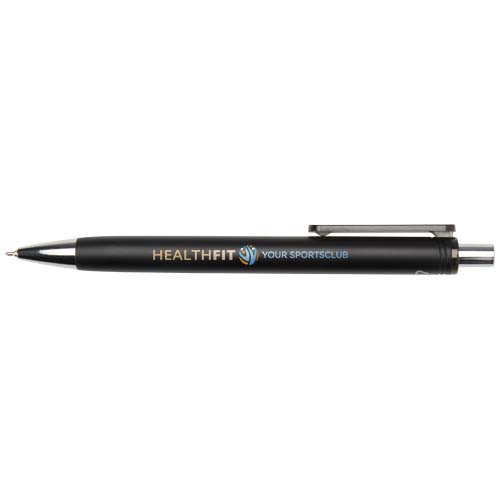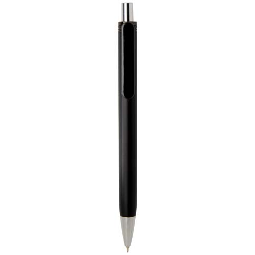 Feld długopis z metalicznym wykończeniem łączący funkcjonalność z eleganckim wyglądem. Wykonany z certyfikowanego przez RCS plastiku ABS pochodzącego z recyklingu, posiada błyszczące metaliczne wykończenie z polerowanymi chromowanymi akcentami. Płynnie działający mechanizm przycisku i wkład z atramentem półżelowym zapewniają komfortowe i płynne pisanie. Kolor tuszu długopisu: czarny Żywotność: 500 m. Rozmiar końcówki 0,7 mm.