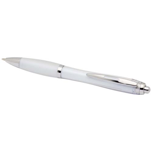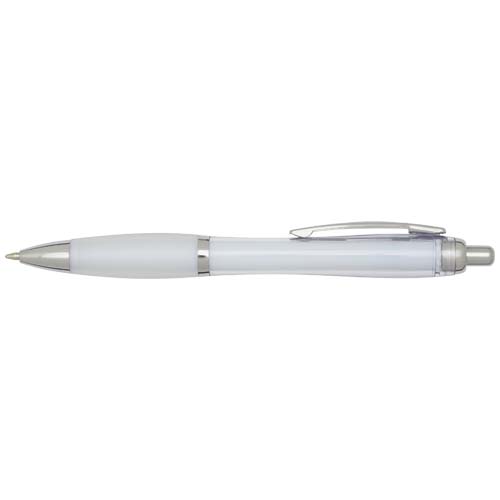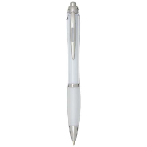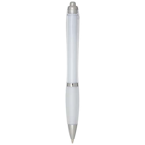 Długopis kulkowy Nash z mechanizmem klikania, wykonany z tworzyw sztucznych pochodzących z recyklingu, charakteryzuje się stylowym, zakrzywionym designem z przezroczystym, kolorowym korpusem ze srebrnymi wykończeniami i dopasowanym kolorystycznie miękkim uchwytem zapewniającym wygodę pisania. Wykonany z plastiku ABS z recyklingu z certyfikatem RCS, przyczynia się do ograniczenia zużycia surowców pierwotnych, zachowując jednocześnie trwałość. Z tyłu umieszczono logo rABS, podkreś