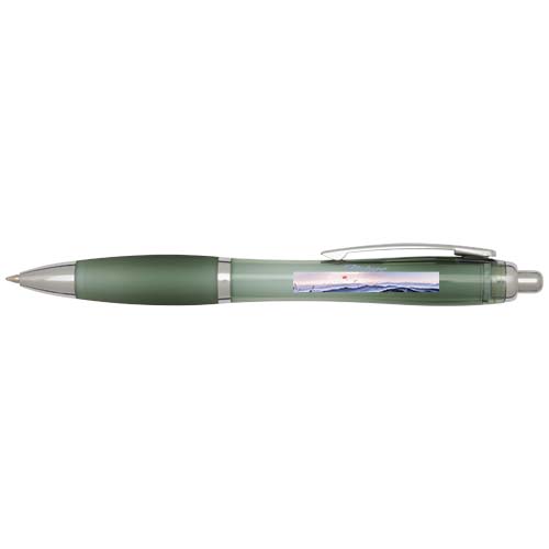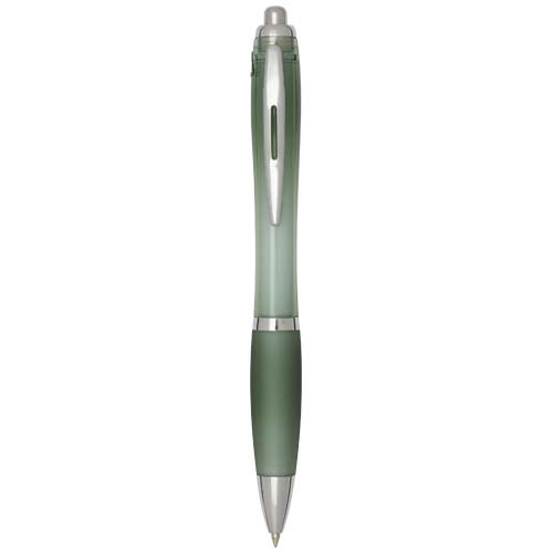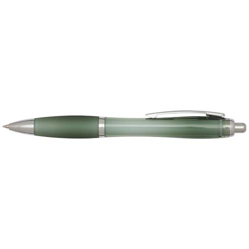 Długopis kulkowy Nash z mechanizmem klikania, wykonany z tworzyw sztucznych pochodzących z recyklingu, charakteryzuje się stylowym, zakrzywionym designem z przezroczystym, kolorowym korpusem ze srebrnymi wykończeniami i dopasowanym kolorystycznie miękkim uchwytem zapewniającym wygodę pisania. Wykonany z plastiku ABS z recyklingu z certyfikatem RCS, przyczynia się do ograniczenia zużycia surowców pierwotnych, zachowując jednocześnie trwałość. Z tyłu umieszczono logo rABS, podkreś
