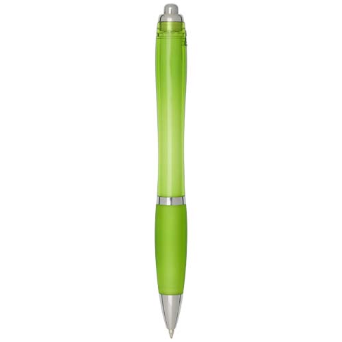 Długopis kulkowy Nash z mechanizmem klikania, wykonany z tworzyw sztucznych pochodzących z recyklingu, charakteryzuje się stylowym, zakrzywionym designem z przezroczystym, kolorowym korpusem ze srebrnymi wykończeniami i dopasowanym kolorystycznie miękkim uchwytem zapewniającym wygodę pisania. Wykonany z plastiku ABS z recyklingu z certyfikatem RCS, przyczynia się do ograniczenia zużycia surowców pierwotnych, zachowując jednocześnie trwałość. Z tyłu umieszczono logo rABS, podkreś
