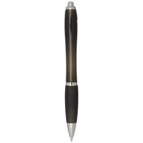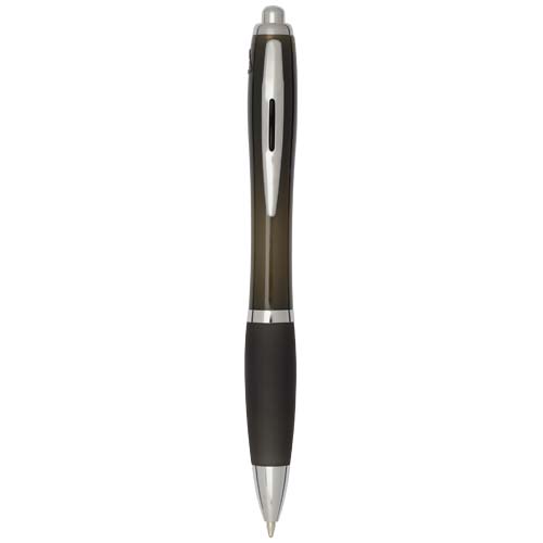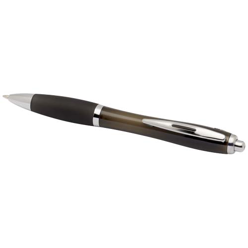Długopis kulkowy Nash z mechanizmem klikania, wykonany z tworzyw sztucznych pochodzących z recyklingu, charakteryzuje się stylowym, zakrzywionym designem z przezroczystym, kolorowym korpusem ze srebrnymi wykończeniami i dopasowanym kolorystycznie miękkim uchwytem zapewniającym wygodę pisania. Wykonany z plastiku ABS z recyklingu z certyfikatem RCS, przyczynia się do ograniczenia zużycia surowców pierwotnych, zachowując jednocześnie trwałość. Z tyłu umieszczono logo rABS, podkreś