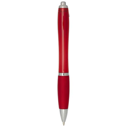 Długopis kulkowy Nash z mechanizmem klikania, wykonany z tworzyw sztucznych pochodzących z recyklingu, charakteryzuje się stylowym, zakrzywionym designem z przezroczystym, kolorowym korpusem ze srebrnymi wykończeniami i dopasowanym kolorystycznie miękkim uchwytem zapewniającym wygodę pisania. Wykonany z plastiku ABS z recyklingu z certyfikatem RCS, przyczynia się do ograniczenia zużycia surowców pierwotnych, zachowując jednocześnie trwałość. Z tyłu umieszczono logo rABS, podkreś