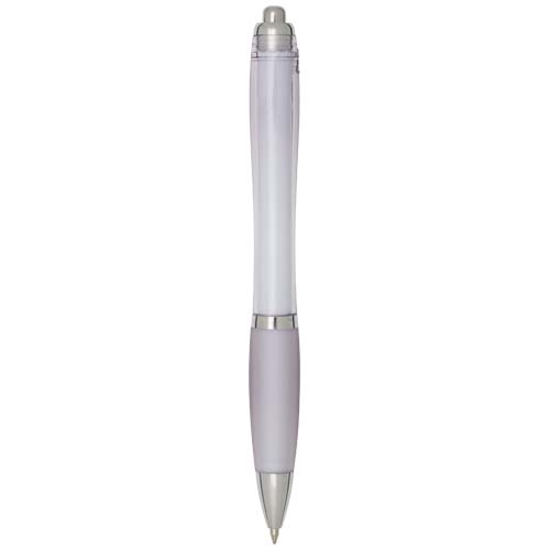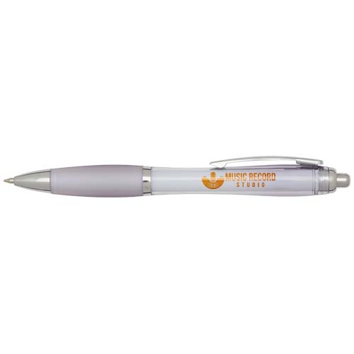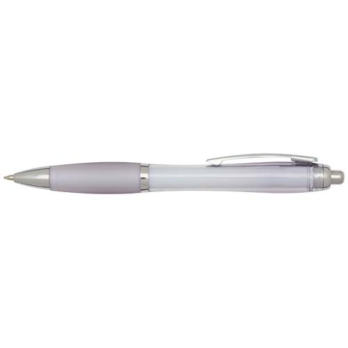 Długopis kulkowy Nash z mechanizmem klikania, wykonany z tworzyw sztucznych pochodzących z recyklingu, charakteryzuje się stylowym, zakrzywionym designem z przezroczystym, kolorowym korpusem ze srebrnymi wykończeniami i dopasowanym kolorystycznie miękkim uchwytem zapewniającym wygodę pisania. Wykonany z plastiku ABS z recyklingu z certyfikatem RCS, przyczynia się do ograniczenia zużycia surowców pierwotnych, zachowując jednocześnie trwałość. Z tyłu umieszczono logo rABS, podkreś