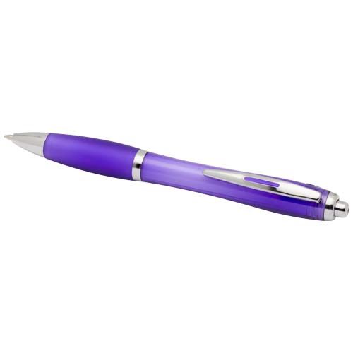 Długopis kulkowy Nash z mechanizmem klikania, wykonany z tworzyw sztucznych pochodzących z recyklingu, charakteryzuje się stylowym, zakrzywionym designem z przezroczystym, kolorowym korpusem ze srebrnymi wykończeniami i dopasowanym kolorystycznie miękkim uchwytem zapewniającym wygodę pisania. Wykonany z plastiku ABS z recyklingu z certyfikatem RCS, przyczynia się do ograniczenia zużycia surowców pierwotnych, zachowując jednocześnie trwałość. Z tyłu umieszczono logo rABS, podkreś