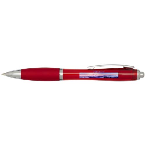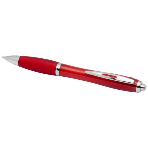 Długopis kulkowy Nash z mechanizmem klikania, wykonany z tworzyw sztucznych pochodzących z recyklingu, charakteryzuje się stylowym, zakrzywionym designem z przezroczystym, kolorowym korpusem ze srebrnymi wykończeniami i dopasowanym kolorystycznie miękkim uchwytem zapewniającym wygodę pisania. Wykonany z plastiku ABS z recyklingu z certyfikatem RCS, przyczynia się do ograniczenia zużycia surowców pierwotnych, zachowując jednocześnie trwałość. Z tyłu umieszczono logo rABS, podkreś