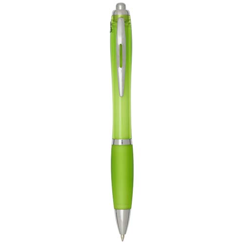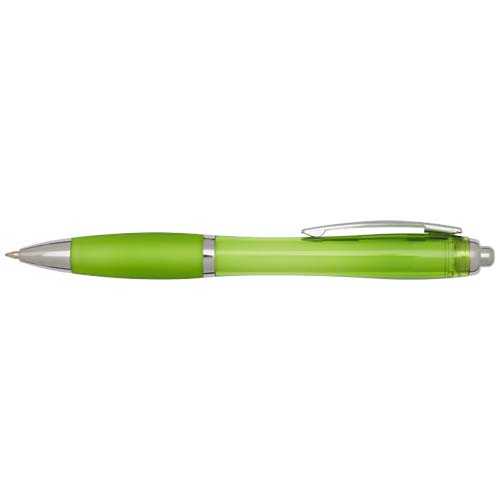 Długopis kulkowy Nash z mechanizmem klikania, wykonany z tworzyw sztucznych pochodzących z recyklingu, charakteryzuje się stylowym, zakrzywionym designem z przezroczystym, kolorowym korpusem ze srebrnymi wykończeniami i dopasowanym kolorystycznie miękkim uchwytem zapewniającym wygodę pisania. Wykonany z plastiku ABS z recyklingu z certyfikatem RCS, przyczynia się do ograniczenia zużycia surowców pierwotnych, zachowując jednocześnie trwałość. Z tyłu umieszczono logo rABS, podkreś