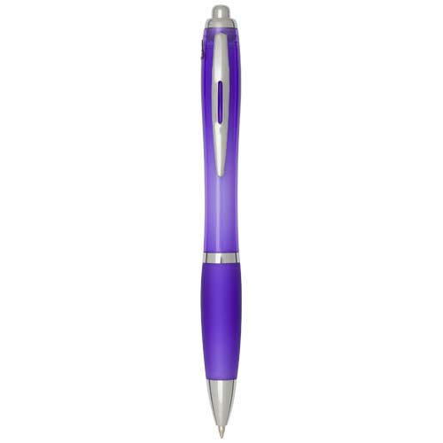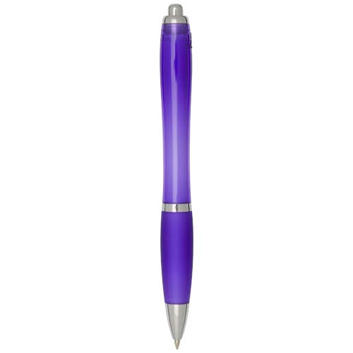 Długopis kulkowy Nash z mechanizmem klikania, wykonany z tworzyw sztucznych pochodzących z recyklingu, charakteryzuje się stylowym, zakrzywionym designem z przezroczystym, kolorowym korpusem ze srebrnymi wykończeniami i dopasowanym kolorystycznie miękkim uchwytem zapewniającym wygodę pisania. Wykonany z plastiku ABS z recyklingu z certyfikatem RCS, przyczynia się do ograniczenia zużycia surowców pierwotnych, zachowując jednocześnie trwałość. Z tyłu umieszczono logo rABS, podkreś