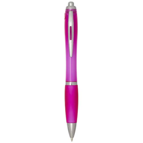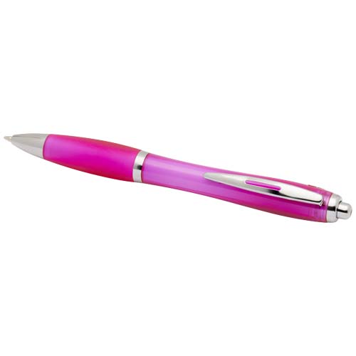 Długopis kulkowy Nash z mechanizmem klikania, wykonany z tworzyw sztucznych pochodzących z recyklingu, charakteryzuje się stylowym, zakrzywionym designem z przezroczystym, kolorowym korpusem ze srebrnymi wykończeniami i dopasowanym kolorystycznie miękkim uchwytem zapewniającym wygodę pisania. Wykonany z plastiku ABS z recyklingu z certyfikatem RCS, przyczynia się do ograniczenia zużycia surowców pierwotnych, zachowując jednocześnie trwałość. Z tyłu umieszczono logo rABS, podkreś