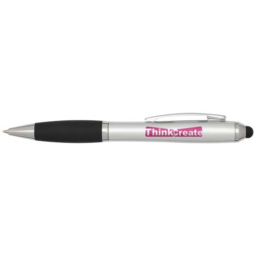 Długopis kulkowy z mechanizmem obrotowym Nash wykonany z tworzyw sztucznych pochodzących z recyklingu charakteryzuje się stylowym, zakrzywionym designem z perłowym korpusem ze srebrnymi wykończeniami, czarnym rysikiem i miękkim uchwytem zapewniającym wygodę pisania. Wykonany z plastiku ABS z recyklingu z certyfikatem RCS, przyczynia się do ograniczenia zużycia surowców pierwotnych, zachowując jednocześnie trwałość. Z tyłu umieszczono logo rABS, podkreślające, że produkt wykon