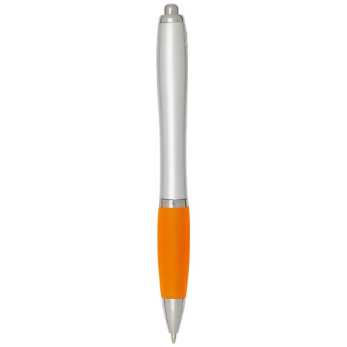 Długopis kulkowy Nash z tworzyw sztucznych pochodzących z recyklingu, z mechanizmem klikania, charakteryzuje się stylowym, zakrzywionym kształtem, srebrnym korpusem ze srebrnymi wykończeniami i kolorowym, miękkim uchwytem zapewniającym wygodę pisania. Wykonany z plastiku ABS pochodzącego z recyklingu z certyfikatem RCS, przyczynia się do ograniczenia zużycia surowców pierwotnych, zachowując jednocześnie trwałość. Z tyłu umieszczono logo rABS, podkreślające, że produkt wykona