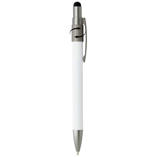 Długopis z rysikiem i fidget spinnerem, łączący praktyczność z zabawnym wyglądem. Długopis jest wykonany z certyfikowanego przez RCS aluminium pochodzącego z recyklingu i wyposażony w płynnie działający mechanizm przycisku oraz końcówkę rysika do obsługi ekranów dotykowych. Wbudowany w górną część długopisu fidget spinner pomaga w łagodzeniu stresu (wystarczy go poruszyć). Kolor tuszu długopisu: czarny Żywotność: 1000 metrów.