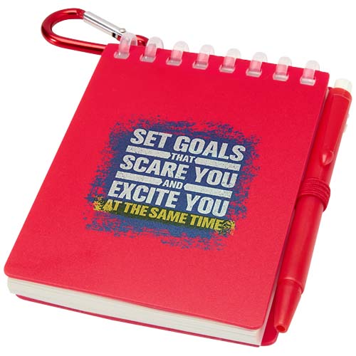 Lig zestaw mini notatnika oraz długopisu to kompaktowe i praktyczne rozwiązanie do robienia notatek w podróży. Notatnik w oprawie spiralnej ma miękką okładkę z recyklingowanego plastiku i 70 czystych kartek z papieru kamiennego o gramaturze 120 g/m², odpornego na działanie wody, dzięki czemu idealnie nadaje się do użytku na zewnątrz. Dzięki zaokrąglonym narożnikom i wbudowanej pętelce na długopis wpisuje się w trend miniaturyzacji, zachowując jednocześnie funkcjonalność.