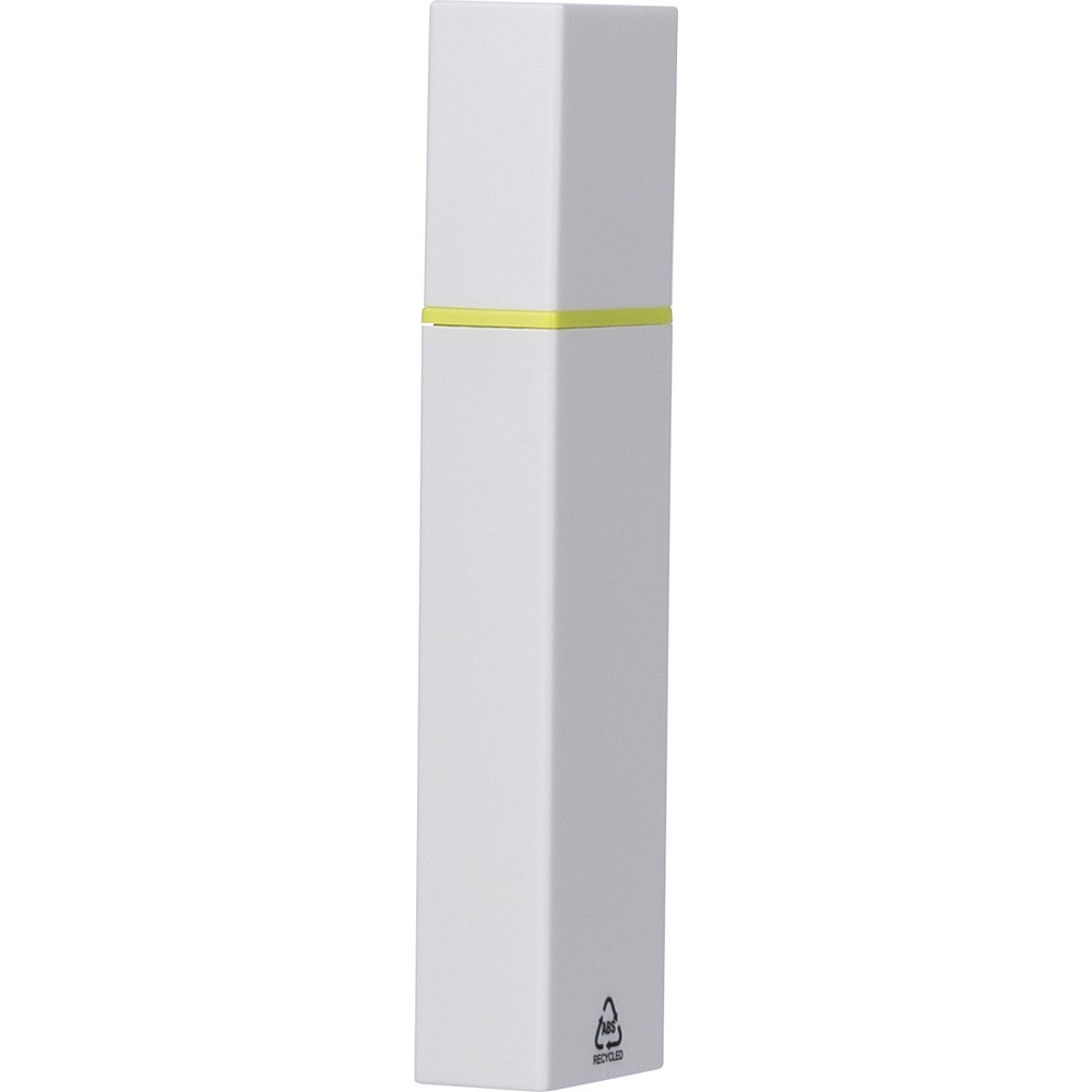Zakreślacz, biała obudowa, kolorowy detal, zawiera ikonę ABS na produkcie, produkt wykonany z ABS z recyklingu