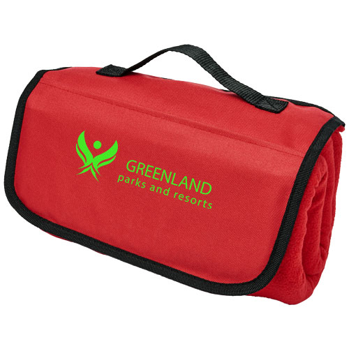 Klasyczny koc z uchwytem ułatwiającym przenoszenie. Z przednią kieszenią na klapce. Wymiary koca to 135 x 117 cm.