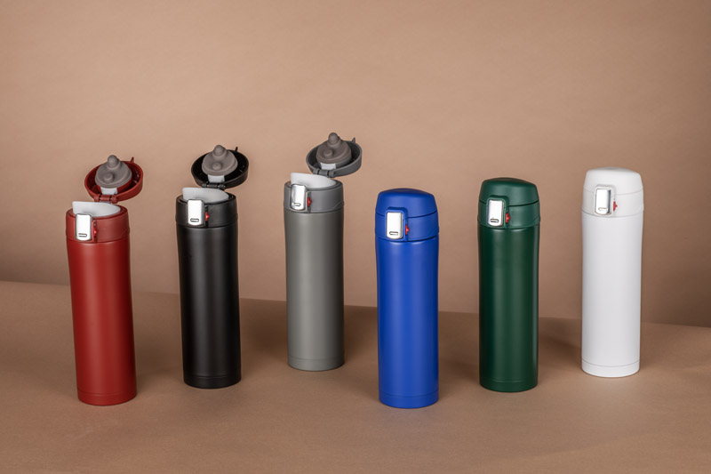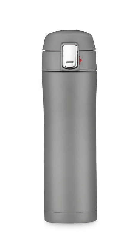 Kubek termiczny LOCK MAT o pojemności 440 ml to niezawodny towarzysz w podróży i w biurze. Dzięki podwójnej ściance z izolacją próżniową utrzymuje temperaturę napojów przez długi czas, a zewnętrzna powierzchnia nie nagrzewa się, chroniąc dłonie przed oparzeniem. Pokrywka typu flip-top z klapką otwieraną od góry pozwala na wygodne picie i szczelne zamknięcie – kubek nie przecieka nawet w torbie. Mechanizm otwierania „naciśnij” ułatwia obsługę jedną ręką. Matowe w