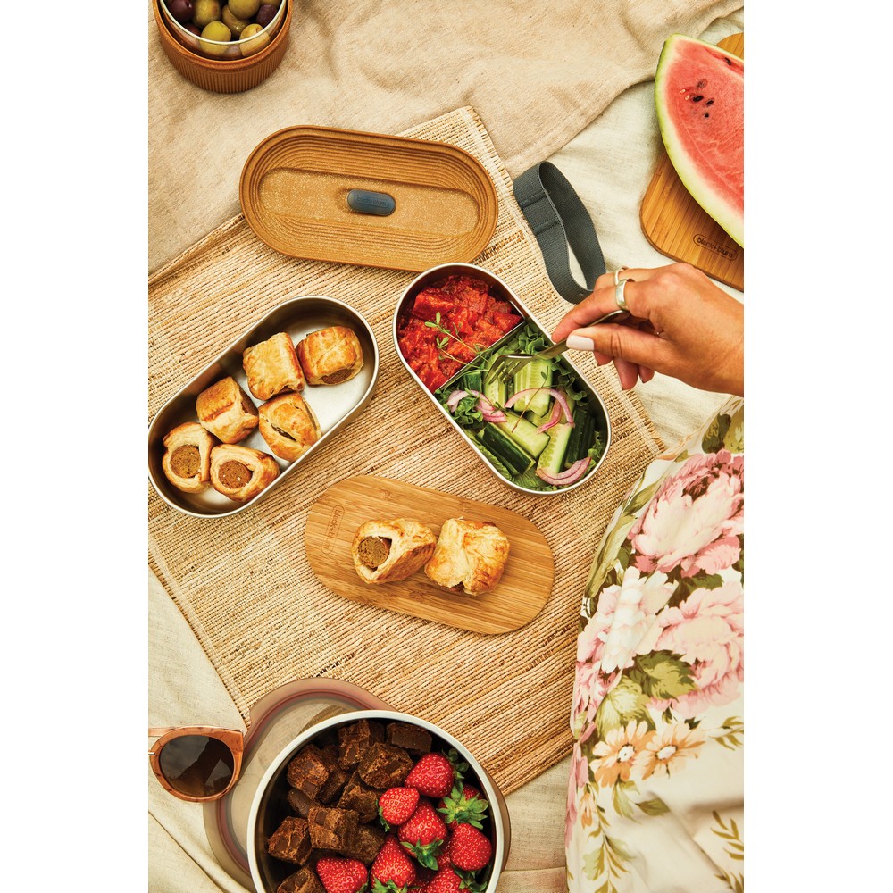 Pudełka śniadaniowe 2 x 500 ml, szczelne, posiadają bambusową pokrywę, widelec w komplecie