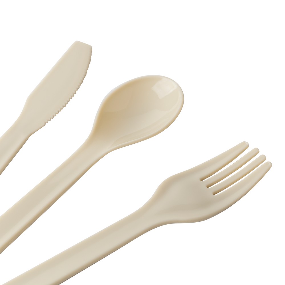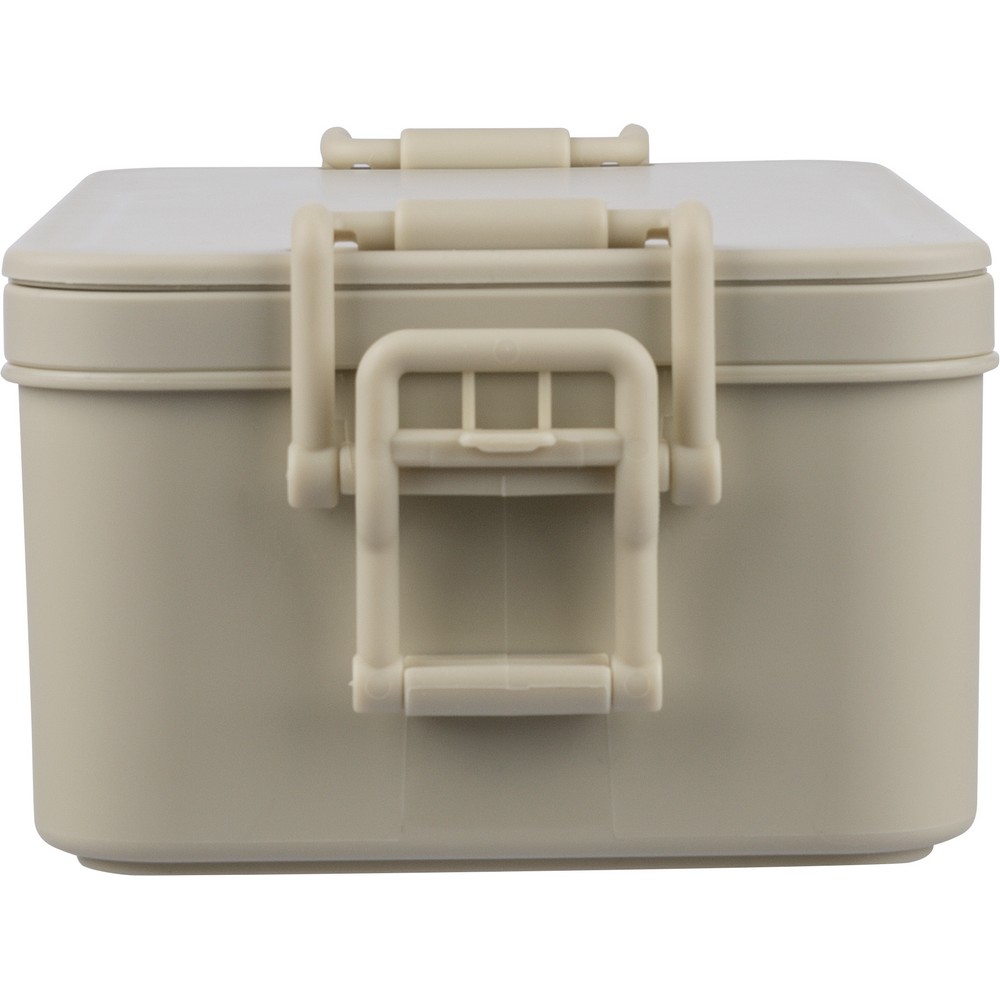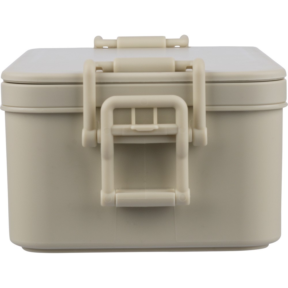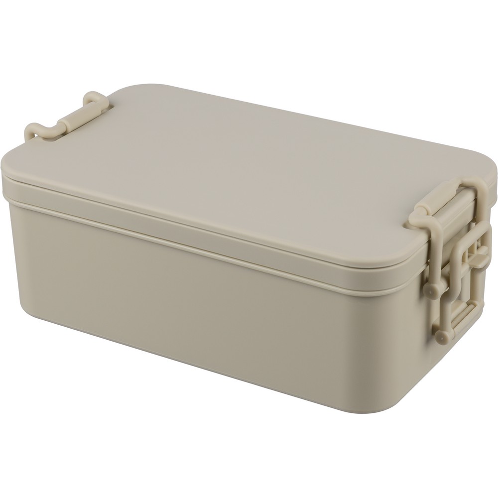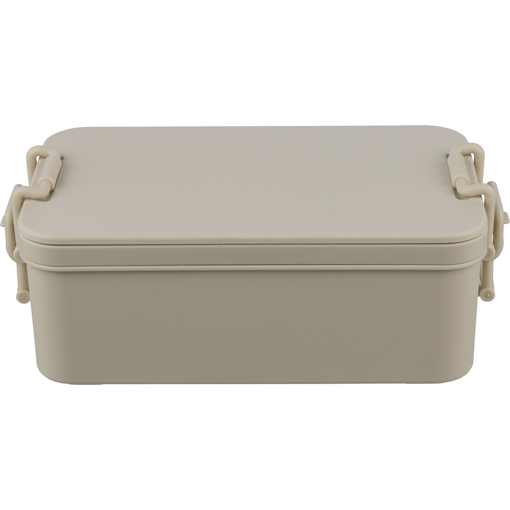 Pudełko śniadaniowe o pojemności 2,2 litra, dwie warstwy, miejsce na sztućce, zamknięcie na klips, wieczko, 3 sztućce w komplecie, produkt wykonany z PP