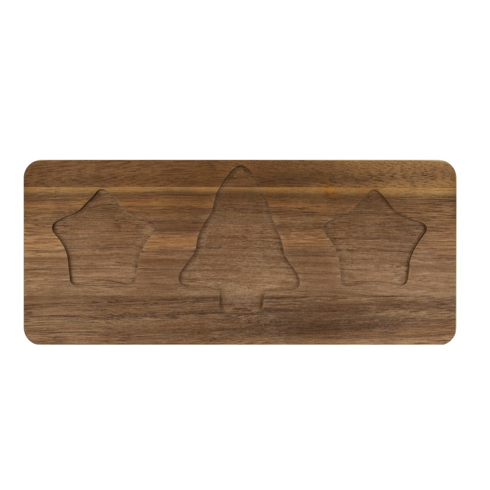 Zestaw świąteczny do serwowania dipów, drewniana deska z drewna akacji, 3 pojemniki ceramiczne – 2 w kształcie gwiazdy i 1 w kształcie choinki, idealne do sosów, dipów i przekąsek