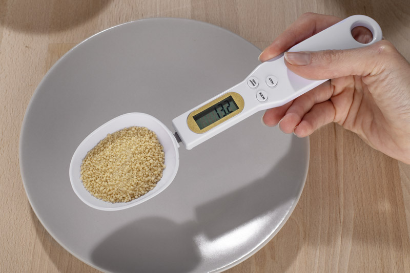 Łyżka z wagą elektroniczną SPOONI to praktyczne narzędzie, które ułatwia precyzyjne odmierzanie składników sypkich i płynnych. Dzięki wbudowanemu wyświetlaczowi pozwala szybko sprawdzić wagę produktu bez konieczności używania tradycyjnej wagi kuchennej. Pojemność łyżki wynosi 30 ml, co sprawia, że idealnie nadaje się do odmierzania przypraw, kawy, cukru czy mąki. Zasilana baterią CR2032 (niedołączoną do zestawu), jest lekka i wygodna w użyciu. To funkcjonalny gadżet,