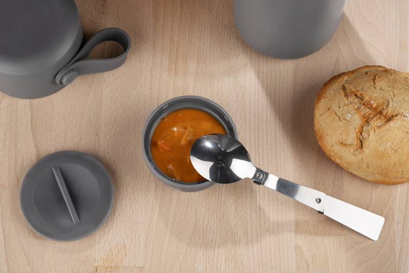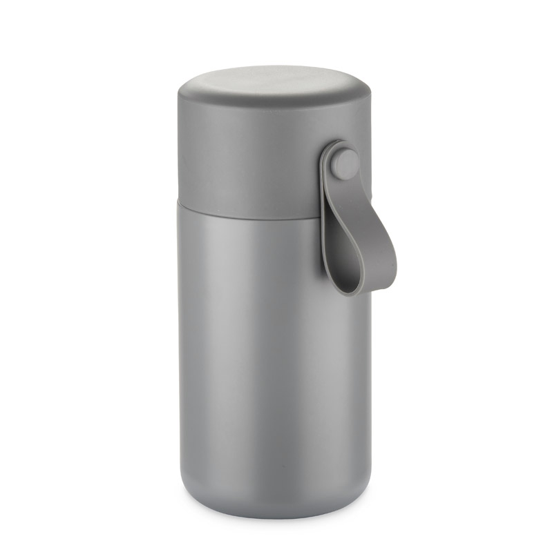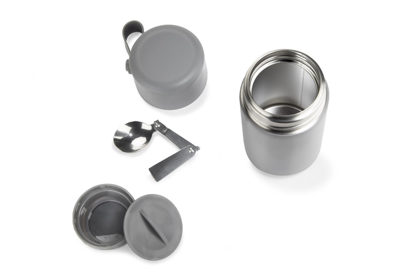 Pojemnik termiczny NOMIO 600 ml to funkcjonalne rozwiązanie do przenoszenia ciepłych posiłków. Wyposażony w szczelne, zakręcane wieczko i gumowy uchwyt, zapewnia wygodne użytkowanie w każdych warunkach. Wewnątrz znajduje się dodatkowy pojemnik z praktyczną, składaną łyżką — wszystko w jednym, kompaktowym zestawie. Dzięki właściwościom termicznym utrzymuje temperaturę jedzenia przez dłuższy czas, co czyni go idealnym towarzyszem w pracy, w podróży lub w terenie. Świetn
