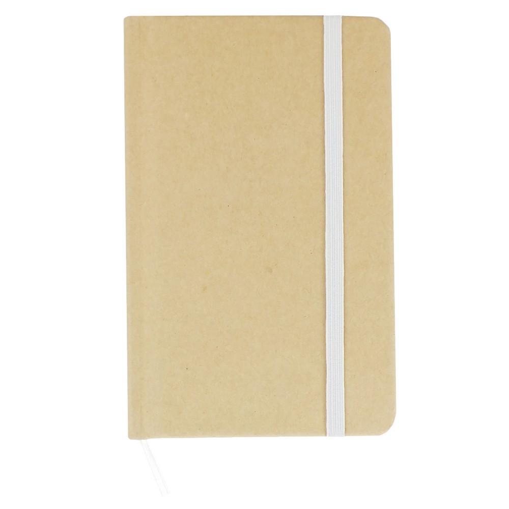 Notatnik (ok. A6, 100 pustych kartek), tasiemka zakładkowa, elastyczna opaska do zamykania