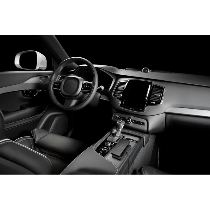 Nowoczesny, minimalistyczny design ładowarki sprawia, że doskonale wpisuje się w stylistykę współczesnych samochodów. Matowe wykończenie podkładki z PVC i subtelne detale nadają jej elegancki wygląd, a kompaktowa forma sprawia, że zajmuje minimalną przestrzeń.