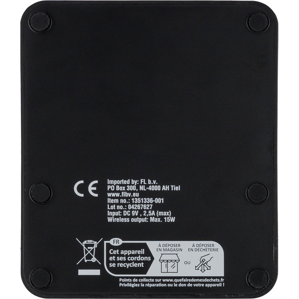 Ładowarka bezprzewodowa 15W, stojak do telefonu, głośnik 5W, bateria 1200 mAh, BT 5.4, wejście 5V/500mA, zapakowany pojedynczo w brązowy kartonik, produkt wykonany z ABS z recyklingu, metalu i PU