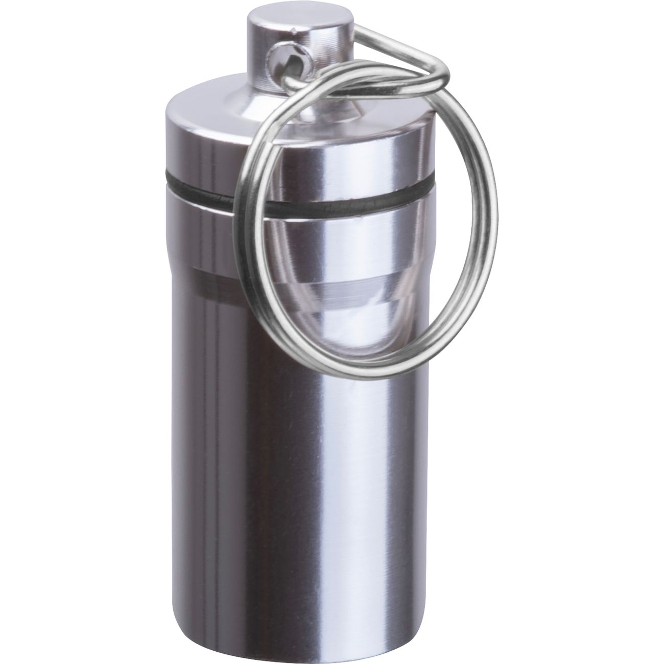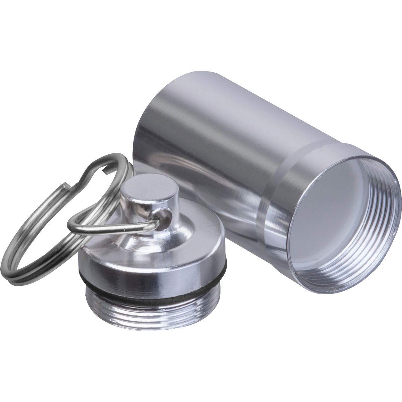 Brelok pojemnik ze stali nierdzewnej i tworzywa to praktyczny gadżet do bezpiecznego przechowywania drobnych przedmiotów i leków w podróży. Sprawdza się jako reklamowy brelok z grawerem lub nadrukiem, idealny jako brelok reklamowy na leki oraz funkcjonalne breloki dla branży medycznej.