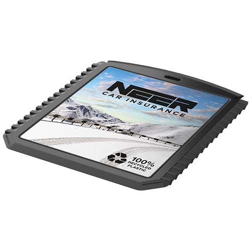 Kompaktowa i wygodna prostokątna skrobaczka do lodu Thrym wykonana z tworzyw sztucznych pochodzących z recyklingu to idealne narzędzie do usuwania oblodzenia. Jest wykonana w 100% z tworzyw sztucznych pochodzących z recyklingu, a jej trwała konstrukcja gwarantuje skuteczne usuwanie lodu i szronu. Posiada krawędź płaską, krawędź ząbkowaną i narzędzie do czyszczenia wycieraczek.
