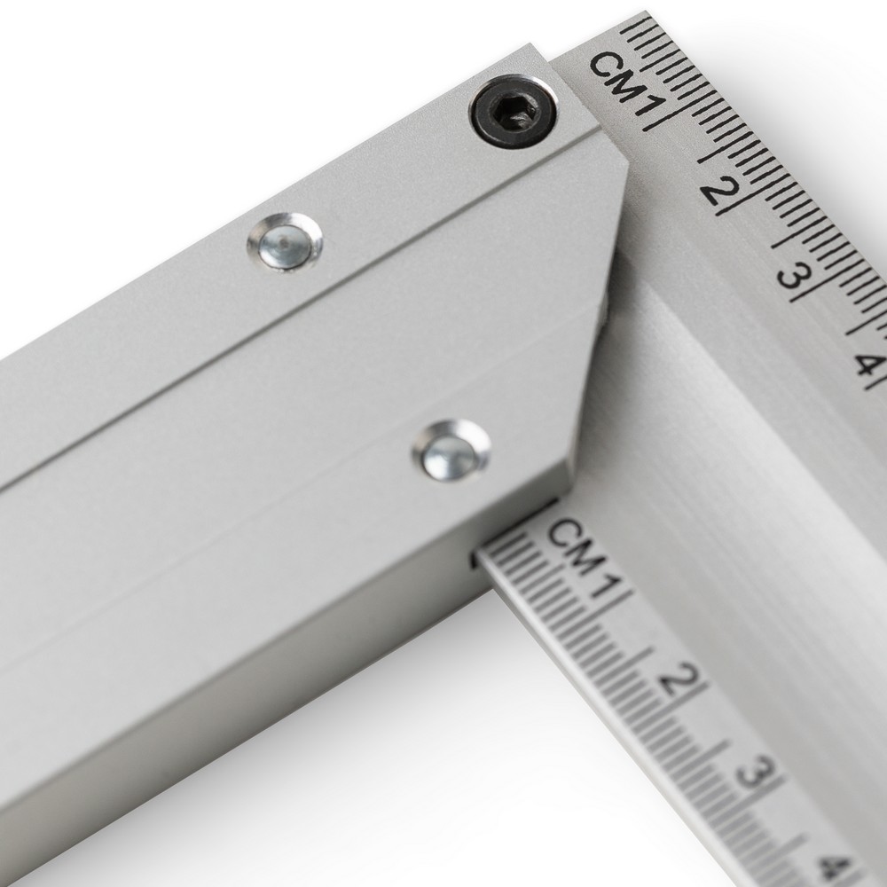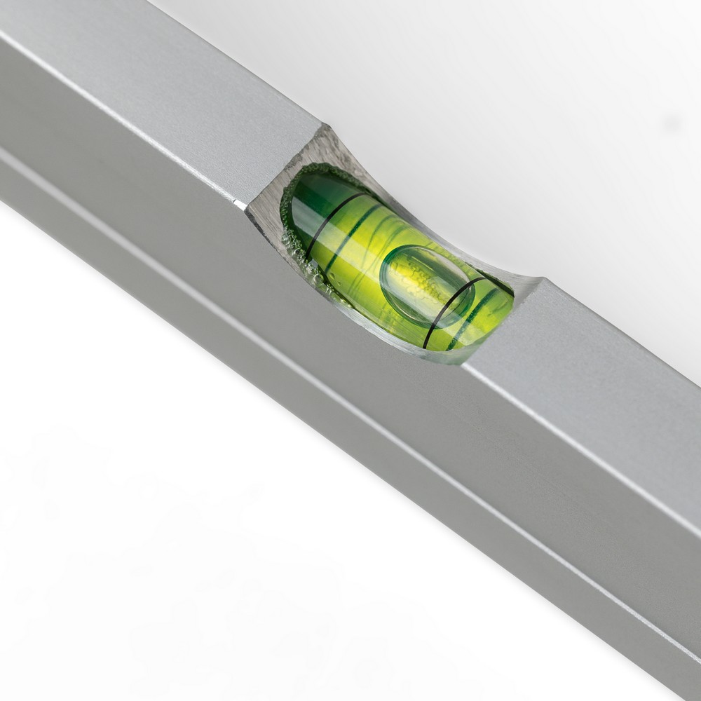 Kątownik 30 cm, poziomica, pomiar w cm, zapakowany pojedynczo w brązowy kartonik, produkt wykonany z aluminium